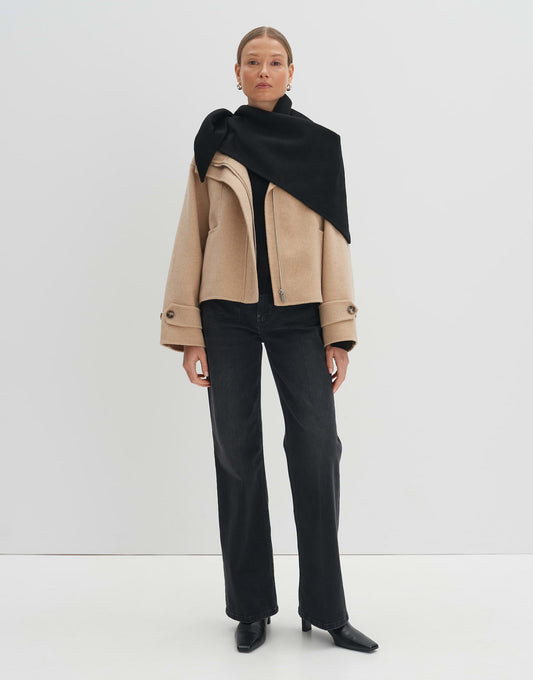 KNITTED SCARF ACRYL/WOOL SOLID schw