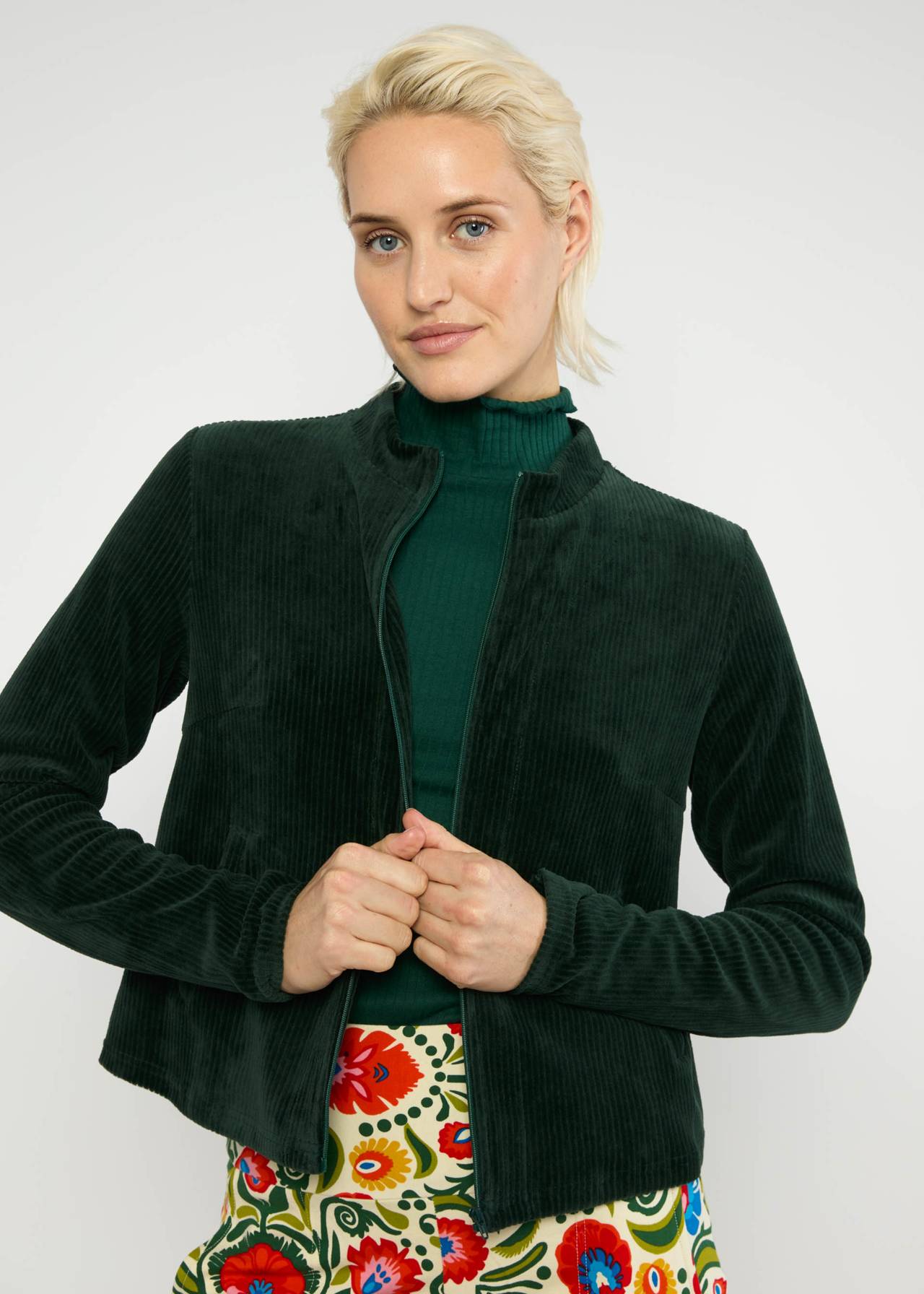 Clean, soft, everyday-ready: Diese Kurzjacke in Feincord-Optik bringt Retro-Charme und moderne Lässigkeit zusammen. Der weiche Cord mit leichtem Stretch sorgt für Bewegungsfreiheit, während die schmal geschnittenen Ärmel und der schlichte Stehkragen dem Design eine cleane Silhouette geben.