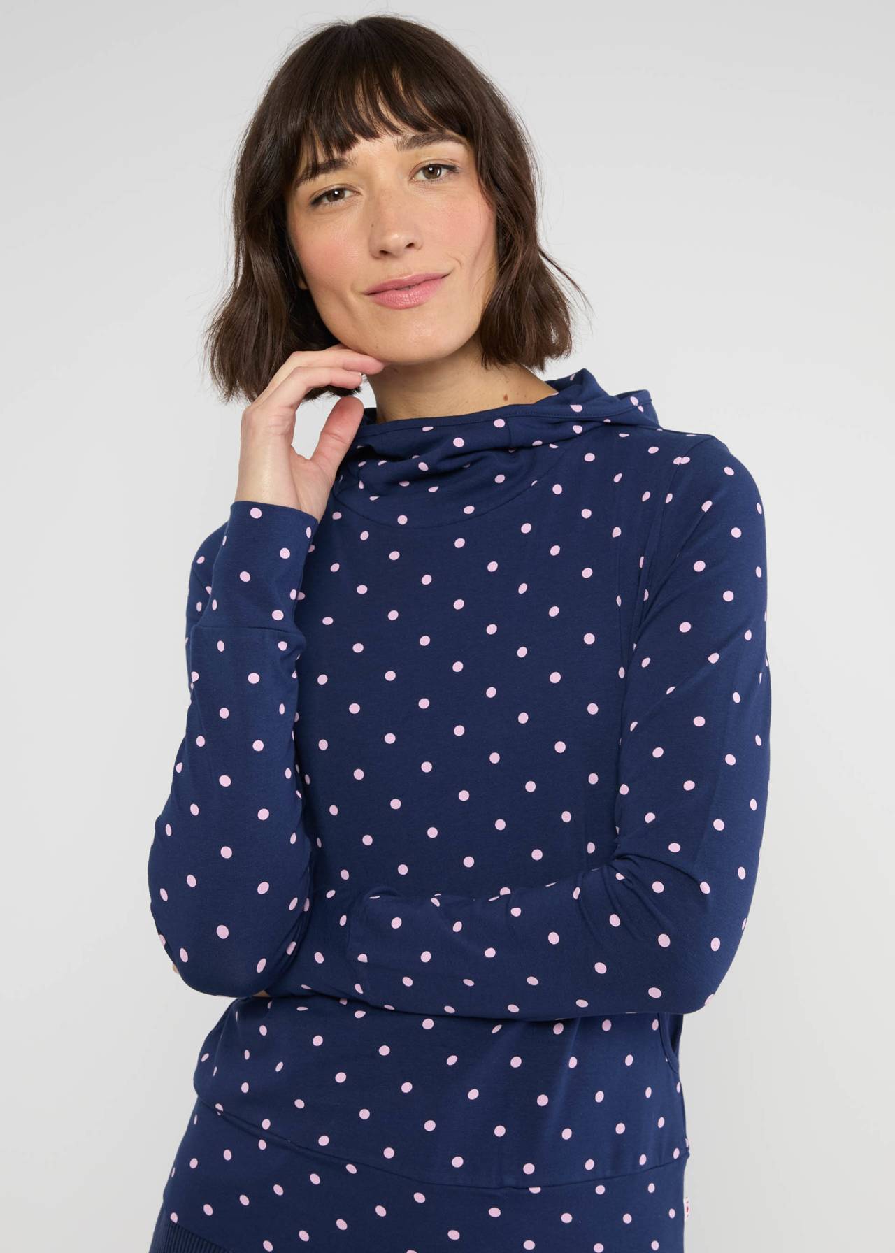 Praktische, abgerundete Eingriffstaschen und ein dezent harmonierendes Futter in der Kapuze runden den Look ab. Als wärmende Zwischenschicht unter Mantel oder Steppweste, beim Stadtbummel, auf dem Sofa oder nach dem Yoga – dieses Damen-Hoodie-Shirt lässt sich easy stylen: mit Denim, Cord, Culottes oder Leggings, zu Sneakern oder Boots. Ein weiches Alltags-Essential, das Komfort und Style in einem vereint.