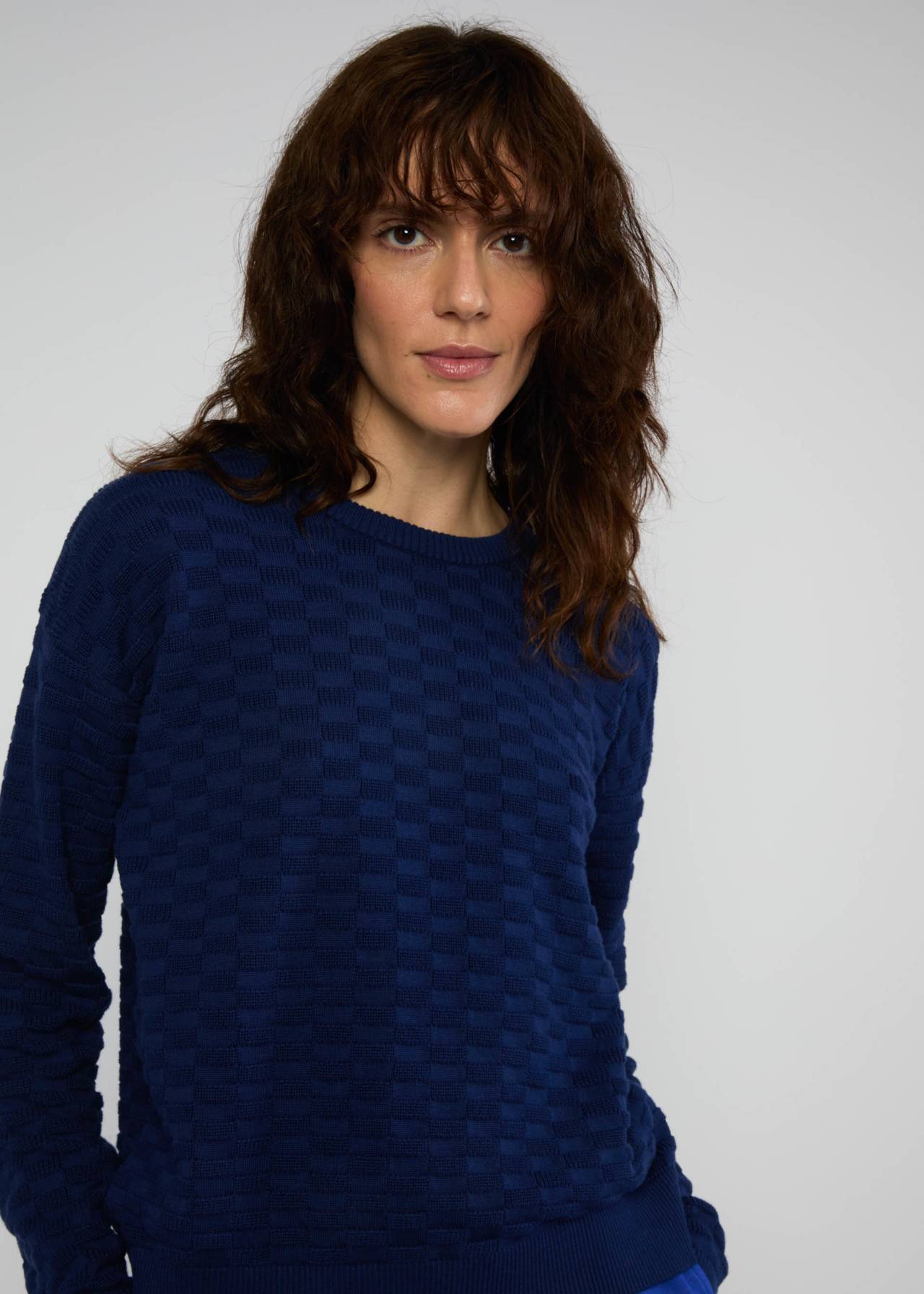 Gemütlicher Strickpullover für alle Tage: Aus 100 % Bio-Baumwolle gefertigt, fühlt sich dieser Pullover angenehm weich an, ist atmungsaktiv und bleibt dank formstabiler Rippbündchen an Hals, Ärmeln und Saum schön in Form. Eine lässige Passform mit leicht überschnittenen Schultern trifft auf ein hochwertiges, strukturiertes Strickbild und einen unkomplizierten Rundhalsausschnitt – modern, clean und vielseitig.