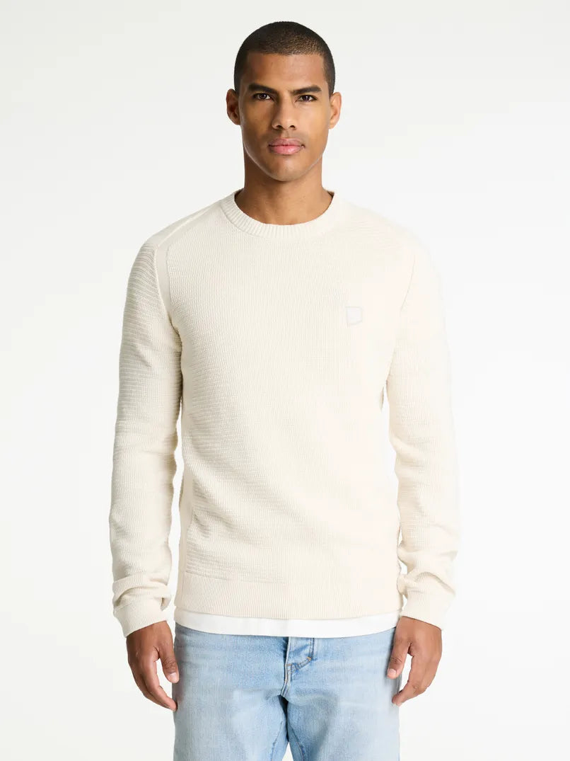 Der Guide ist ein Regular-Fit-Crewneck-Pullover aus Basketweave-Performance-Stoff mit weichem Griff. Mit tonalem Komma-Badge auf der Brust.