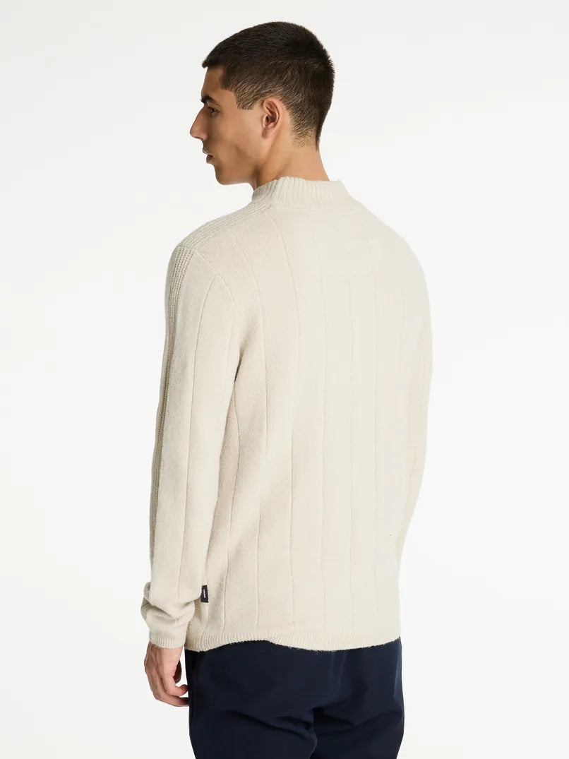 Der Track Mock ist ein Regular-Fit-Strickpullover mit Mockneck sowie elastischem Rippkragen und Bündchen. Versehen mit einem CHASIN'-Komma-Badge auf der Brust.