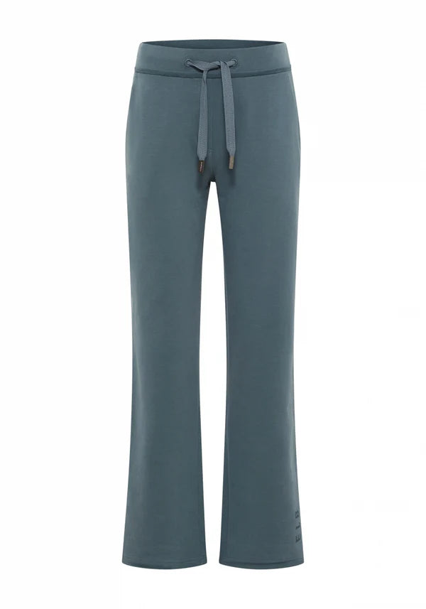 Der bequeme Bund mit integriertem Gummi garantiert einen sicheren Sitz, während seitliche Eingriffstaschen und aufgesetzte Taschen hinten Funktionalität mit lässigem Style verbinden. Ein dezenter Wording Print auf dem linken Bein verleiht der Hose einen femininen Lounge-Charakter.