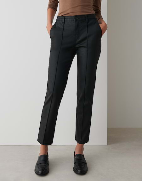 Verkürzte Kick Flared Denim mit softem Coating vereint authentischen Look mit hohen Tragekomfort. Als Statement Piece im Kunstleder-Look bringt sie Trendbewusstsein in jedes Outfit.