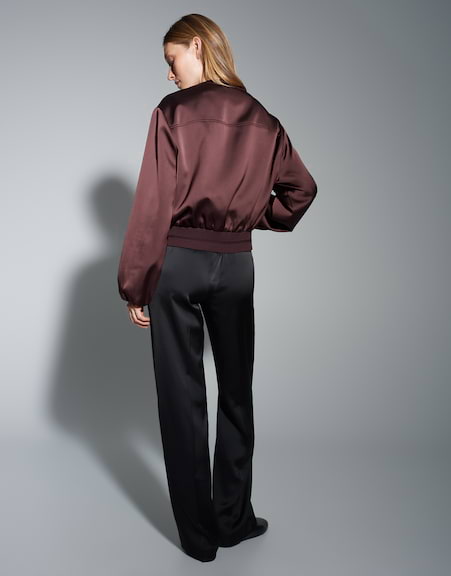Festlich glänzender Satin Blouson bringt als sportlicher Blazerersatz glanzvolle Wohlfühlmomente in den Alltag. Im Stilbruch zu Jeans gestylt, entsteht ein femininer Casual Look mit moderner Ausstrahlung.