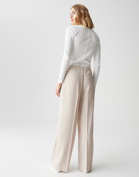 Die Marlenehose besticht durch ihr langes, weites Bein und markante Bügelfalten, die die Silhouette optisch strecken. In feiner Mélange-Optik gestaltet, präsentiert sie sich als Business-Style mit femininer Ausstrahlung.