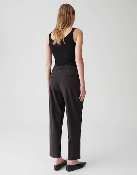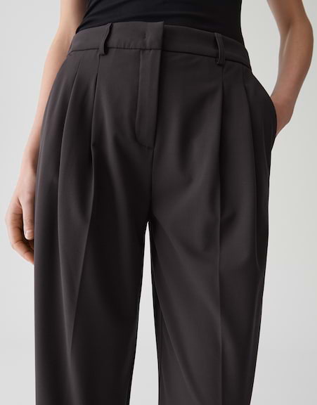 Die weit geschnittene City Pants bringt klassischen Tailoring neu in Form. Bequeme Stretchware und Tailoring Details wie die doppelten Bundfalten sorgen für stilvolle Lässigkeit mit maximalem Tragekomfort. Ein smarter Look, der Business Chic mühelos entspannt interpretiert.
