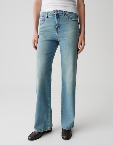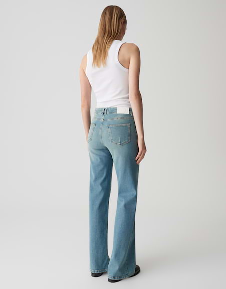 Die Wide Leg Jeans ist ein echter Trendartikel: Authentischer Blue-Denim mit Used-Waschung, 5-Pocket-Stil und weitem, geraden Beinverlauf – modern und vielseitig kombinierbar.