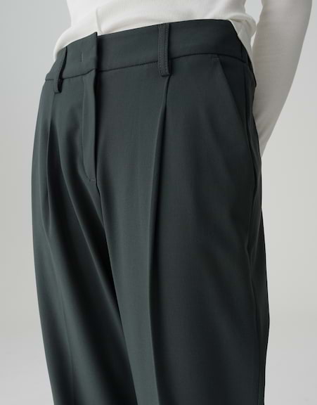 Die weit geschnittene Hose bringt moderne Souveränität und feminine Leichtigkeit in Business Looks. Der konfektionierte Komfortbund im Rückteil garantiert einen angenehmen Sitz den ganzen Tag.