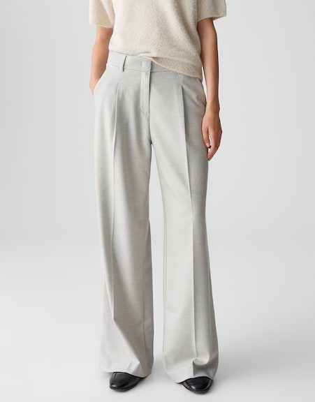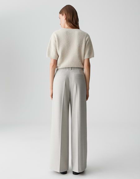 Die weit geschnittene Hose mit leicht melangierter Optik verleiht Business-Looks moderne Souveränität und feminine Leichtigkeit. Ein konfektionierter Komfortbund im Rückteil sorgt für entspannten Sitz.