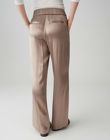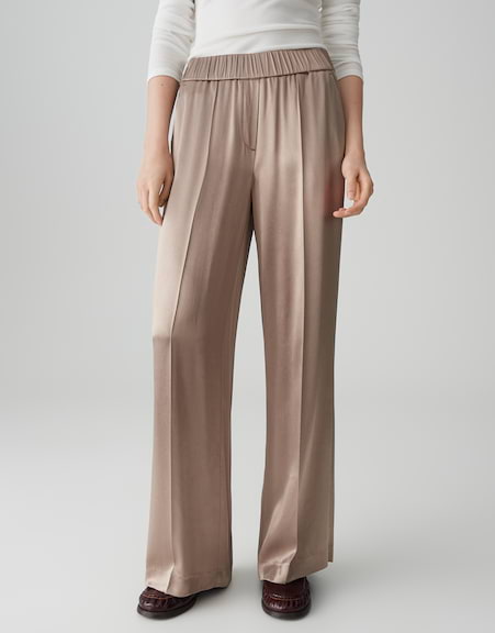 Die Palazzo Pants überzeugt mit soft schimmerndem Satin und einem komfortablen Bund, der den ganzen Tag für ein angenehmes Tragegefühl sorgt. Die fließende Silhouette und das elegante Design machen diese Hose zum Must-have für vielseitige Stylings, perfekt von Business bis Afterwork.