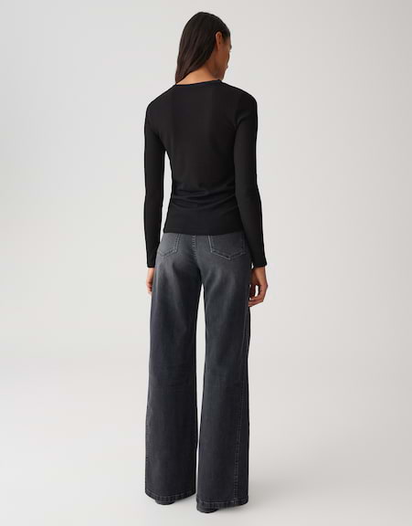 Figurschmeichelnd und angenehm soft begleitet das Longsleeve in weicher Rippstruktur als unverzichtbares Basic jede Bewegung und setzt dezente Akzente unter Blazer, Strick oder solo getragen.