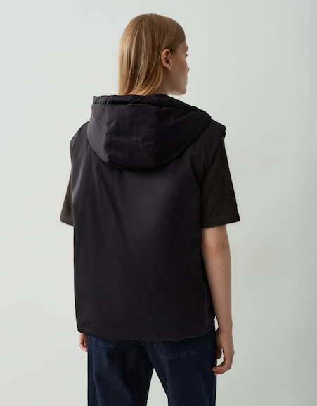 Diese wendbare, wattierte Weste vereint zwei Looks in einem Style und begeistert mit verstellbarer Kapuze, modernem Onion Stepp, semimattem Glanz und glattem Griff. Für wandelbare Outfits im Handumdrehen.