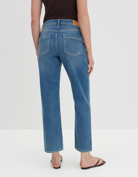 gerader Beinverlauf, Hosenbein Innenlänge ca. 70 cm in jeder Größe, Model Größe 178 cm ? trägt Größe 36, Denim, weicher Griff, formstabil, authentische Waschung, Swingpockets vorne, eckige Gesäßtaschen, verdeckter Zip-Fly, leichte Used-Effekte | |