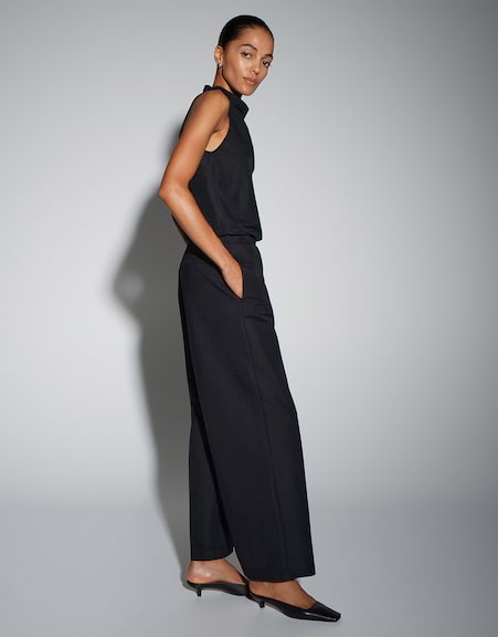 Ein einziger Overall genügt, um sofort top gestylt zu sein. Der ärmellose, schulterfreie Jumper aus Stretch-Jersey schenkt ein angenehmes Tragegefühl, lässt sich wunderbar mit Strick- oder Lederjacke kombinieren und ist als bequemer Einteiler eine stilsichere Wahl für elegante Festtagslooks.