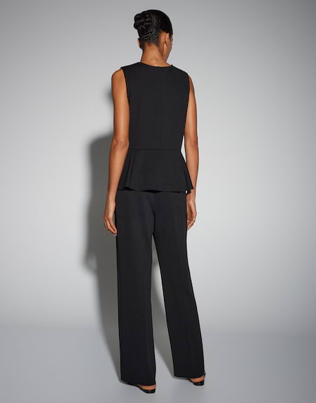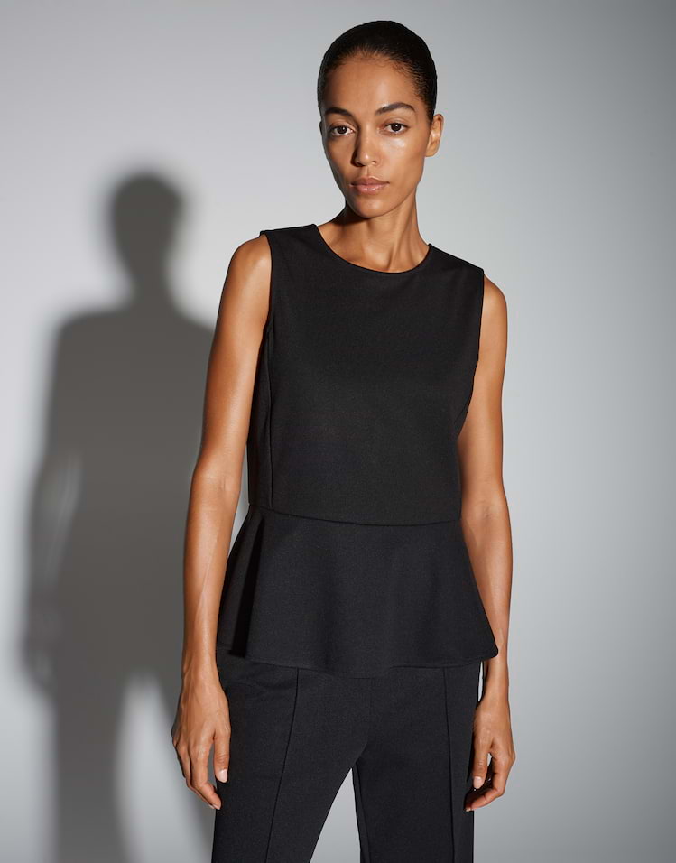 Jerseytop mit Peplum interpretiert den neuen Trend modern und feminin: Feiner, kompakter Rippjersey und eingenähte Falten formen ein weich fallendes, ausgestelltes Schößchen am Saum. Das Modell begeistert nicht nur zu festlichen Anlässen, sondern auch als Fashion-Statement im Alltag.