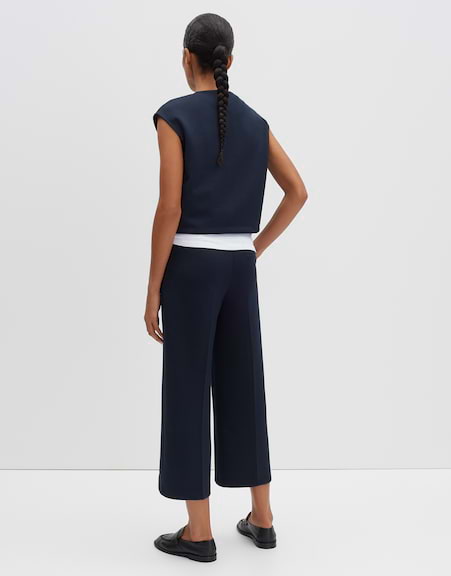 normale Passform, leicht talliert, leicht verkürzt geschnitten, überschnittene Schulter, Rundhalsausschnitt, Rückenlänge ca. 49 cm bei Größe 36, Model Größe 176 cm ? trägt Größe 36, Sweatware, dezente Twillstruktur, fester Griff, leicht elastischer Stoff, knitterarm, verdeckte Knopfleiste | |