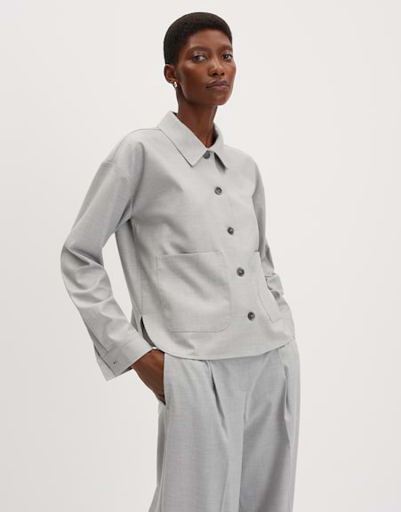 Im cleanen Flanell zeigt sich die Hemdbluse mit prägnanten Cargo-Elementen. Große Taschen bringen Utility-Charakter in den Style, der zusammen mit der Wide Leg zu einem modernen Business Statement verschmilzt.