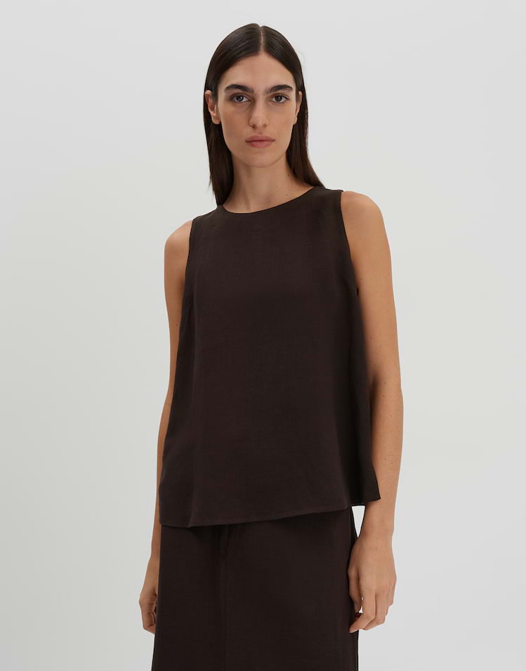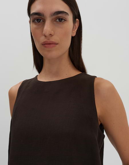 lockere Passform, leicht ausgestellt geschnitten, ärmellos, Rundhalsausschnitt, Rückenlänge ca. 59 cm bei Größe 36, Model Größe 176 cm ? trägt Größe 36, Webware, dezente Twillstruktur, glatter Griff, weich fließender Fall, atmungsaktiv, kühlender Effekt, abgerundeter Saum, Knopf mit Öse im Rücken | |