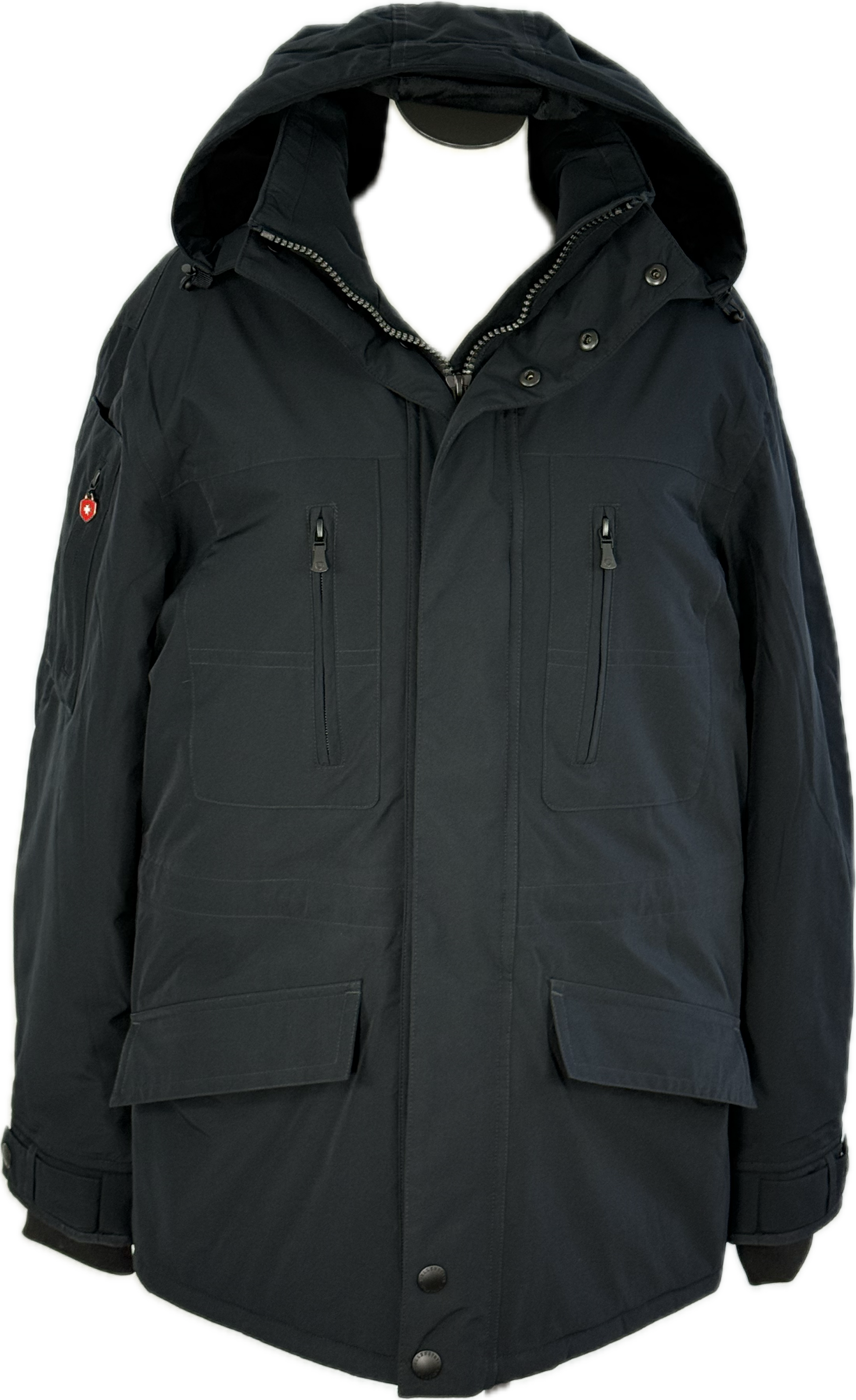 Leichte, klimastabile Multifunktions-Übergangsjacke in ¾- Länge. Sie verfügt über fünf Außentaschen, eine Napoleontasche, zwei Innentaschen mit Reißverschluss und eine große Multi-Pocket. Zum optimalen Windschutz verfügt die Golfjacke über einen hohen Sturmkragen sowie eine in zwei Richtungen verstellbare Kapuze. Die Taillenweite sowie die Ärmelabschlüsse sind per Tunnelzug verstellbar.