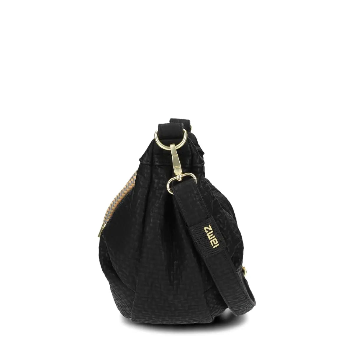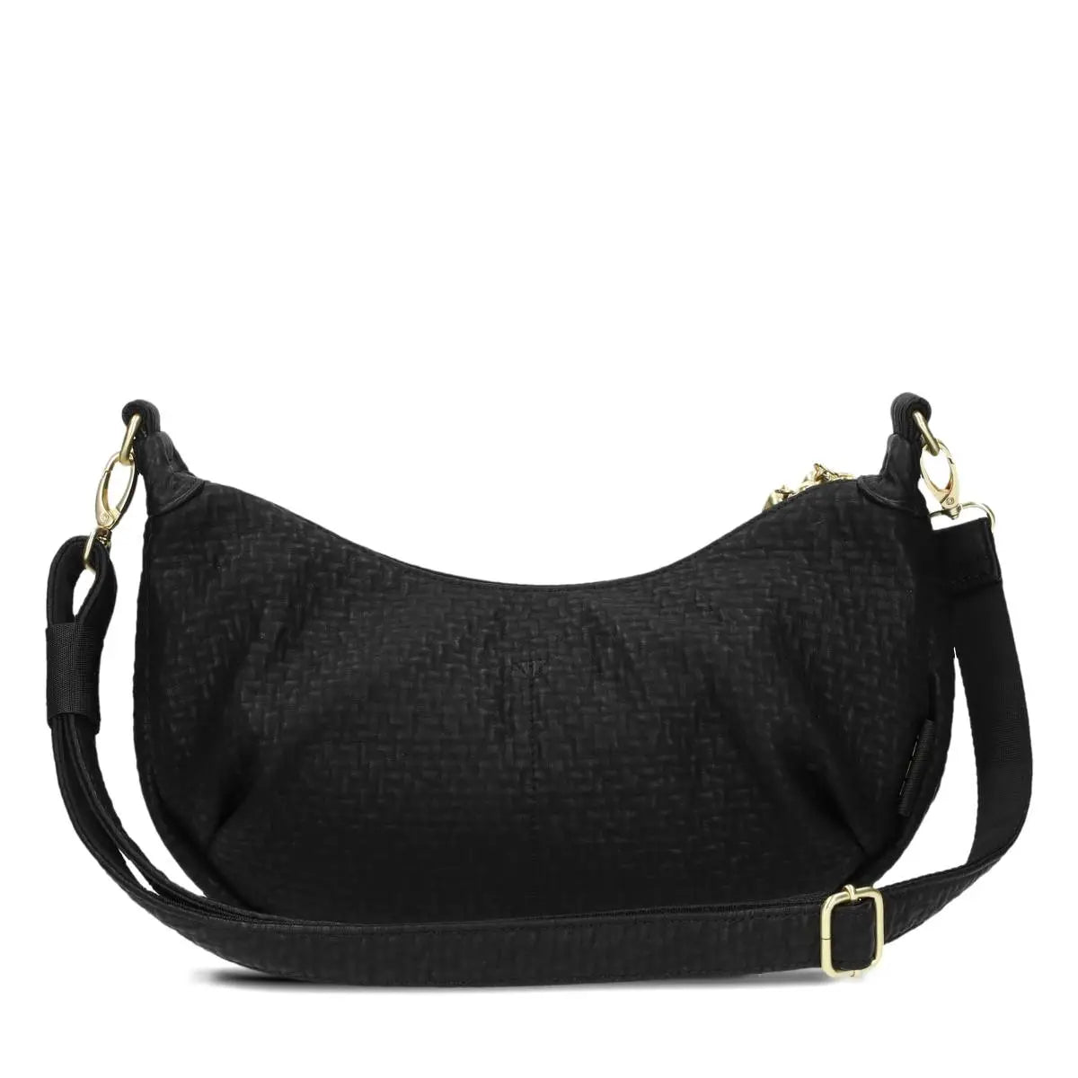 Die stylische Moon Bag LO70 begeistert mit weichem, knautschigem Mikrofaser-Kunstleder* und samtiger Haptik. Die offene, veloursartige Rückseite unterstreicht ihr besonderes Design, während das robuste, wasser- und schmutzabweisende Material für maximale Alltagstauglichkeit sorgt. Ein verstellbarer Schultergurt, Kordeln an den Reißverschlüssen, zwei Mesh-Einsteckfächer und ein herausnehmbarer Schlüsselanhänger sorgen für Komfort und Funktionalität.